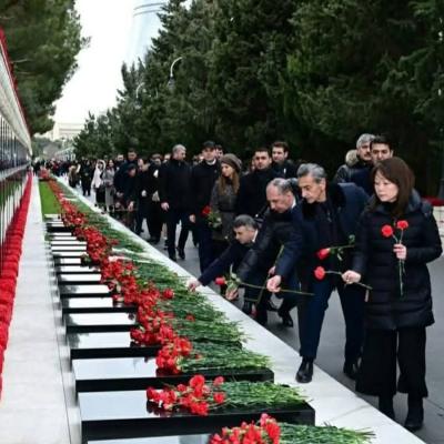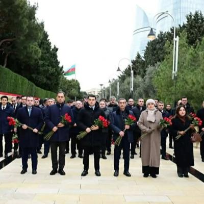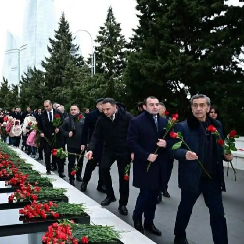 К могилам героических сынов Родины были возложены цветы, и их светлая память была почтена с глубоким уважением и почтением.