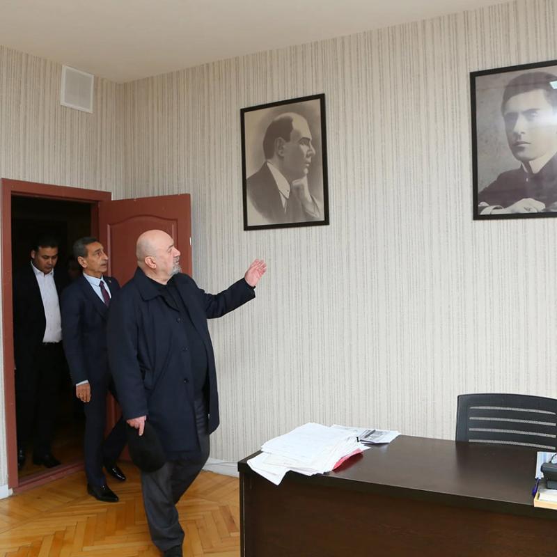 Хаджи Исмаилов познакомил гостей со зданием Союза и работающими здесь лабораториями. Гости наблюдали за процессом подготовки молодых актеров на малой сцене.