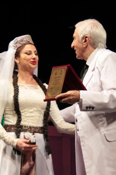 Alqışlarla qarşılanan tamaşanın sonunda Azərbaycan Teatr Xadimləri İttifaqının sədr müavini, Xalq artisti, professor İlham Namiq Kamal teatrın balet artistləri Roman Krasnov və Anna Cabbarovanı teatr sahəsində 20 illik səmərəli fəaliyyətləri münasibəti ilə təbrik edib, İttifaq və teatr rəhbərliyi tərəfindən verilən fəxri fərmanları sənətçilərə təqdim edib.