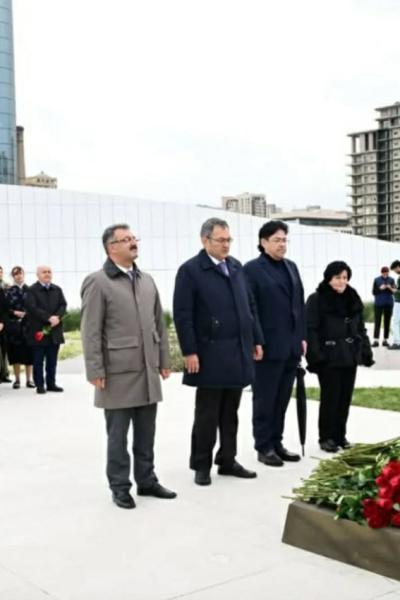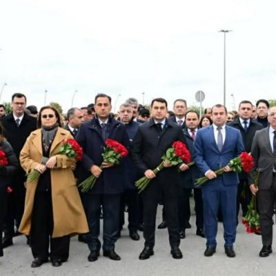 abidənin girişindəki xatirə daşının önünə gül dəstələri qoyub, qəhrəman Vətən övladlarının əziz xatirəsini dərin hörmət və ehtiramla yad ediblər.