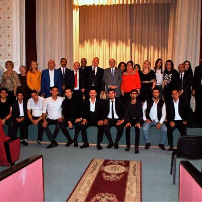 Teatrın direktoru Vaqif Vəliyev İttifaqın nümayəndələrini kollektivlə tanış etdi. Nümayəndə heyətinin başçısı, Azərbaycan Teatr Xadimləri İttifaqının sədr müavini, Xalq artisti Rafiq Əliyev çıxış edərək 31-ci mövsümün açılışı münasibəti ilə teatrın kollektivini təbrik etdi, Azəbaycan teatr sənətinin inkişafı naminə çətin şəraitdə çalışan kollektivə yeni yaradıcılıq uğurları arzuladı.